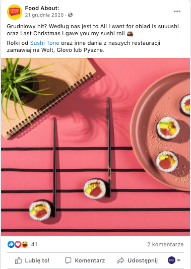 Nawet gdyby właśnie nie trwał lockdown gastronomii, nasz gość nie może odwiedzić naszych restauracji, usiąść przy stoliku i poczekać na kelnera. Dlatego w przypadku Food About autrntyczność budujemy na komunikacji i jakości dostarczanego jedzenia. Tworząc content kierujemy się koniecznością pokazania gościom (klientom), że pomimo braku stolików czy sali, jedzenie które zamawiają jest prawdziwe i robione z uczuciem. Z myślą o tych, którzy będą je jeść.