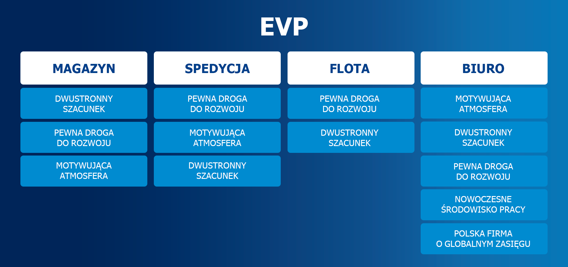 Analizując wywiady z pracownikami i rozpatrując filary naszego EVP opracowaliśmy platformę komunikacyjną - Kariera w SUUS to logistyczny wybór. Gra słów jest nieprzypadkowa. W jasny sposób pokazuje, że SUUS jest najbardziej logicznym miejscem do rozwijania kariery w branży TSL.