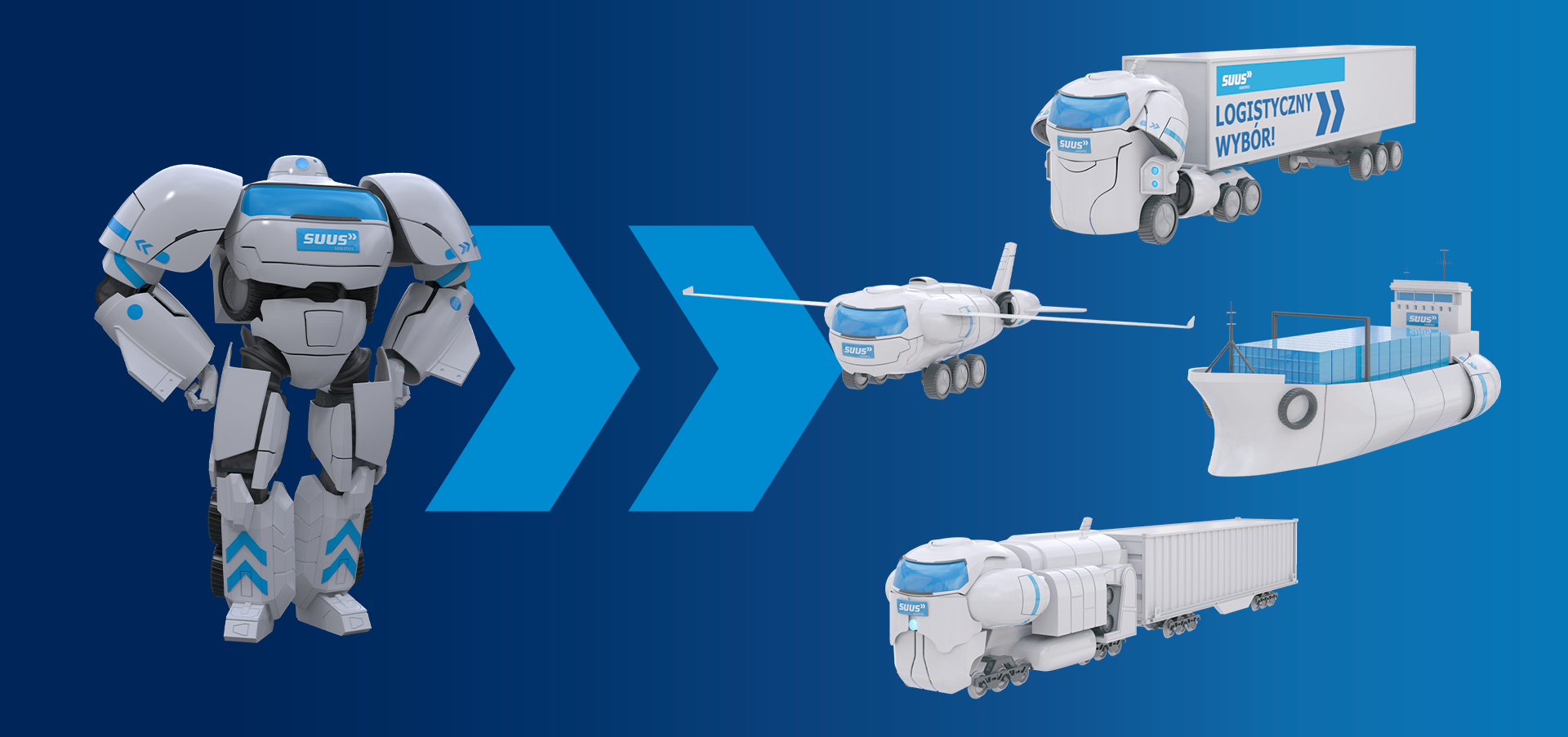 LogiSUUS utożsamia wszystkie cechy firmy: opiekuńczość, nowoczesność i pewność siebie. W kampanii jest pomocnikiem i metaforą kompleksowości usług jakie świadczy firma.